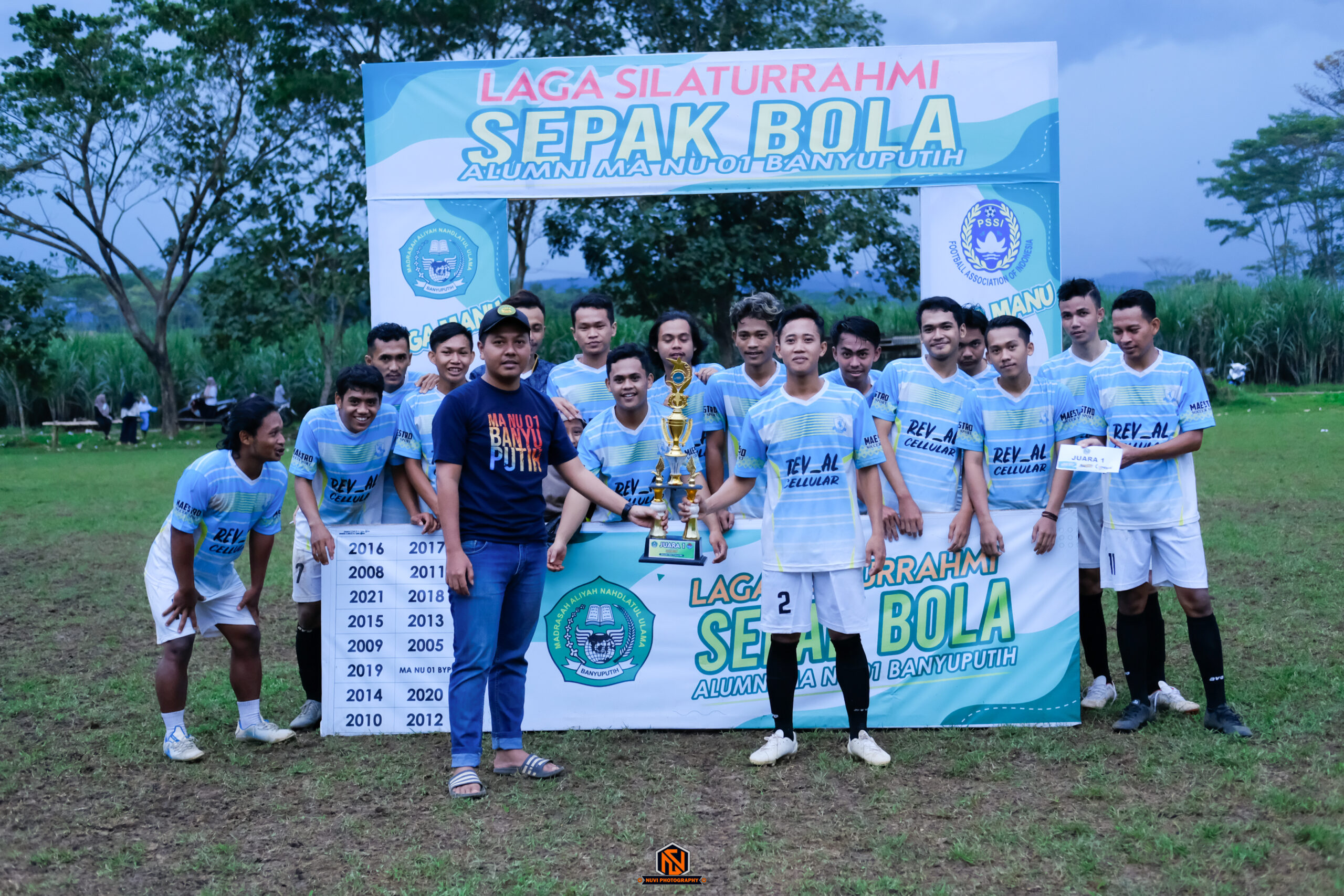 Tim sepak bola alumni angkatan tahun 2018 meraih juara 1 Laga Silaturrahmi Sepak Bola Alumni MA NU 01 Banyuputih 2022 yang diselenggarakan di Lapangan Tamanjoyo Dukuh Lokojoyo Desa Banyuputih pada Kamis (17/2) Sore.