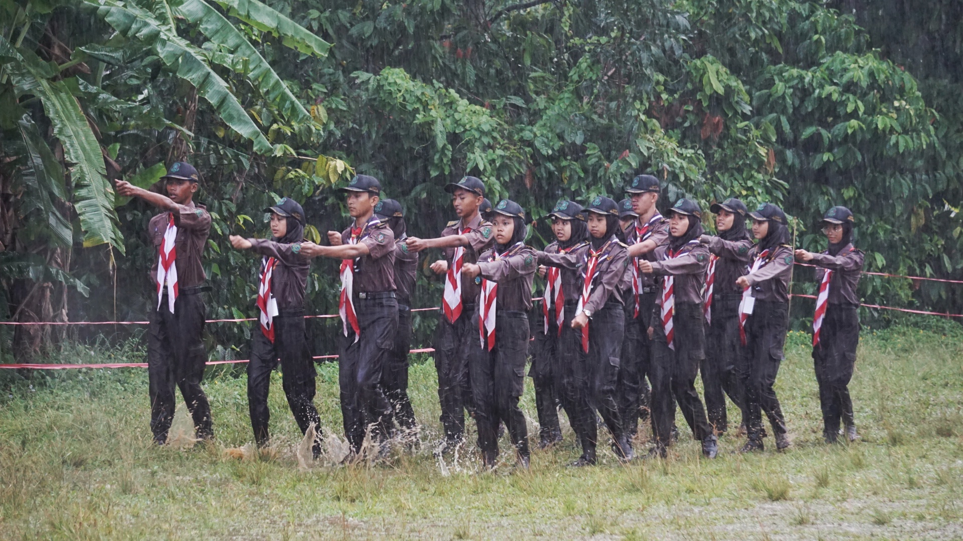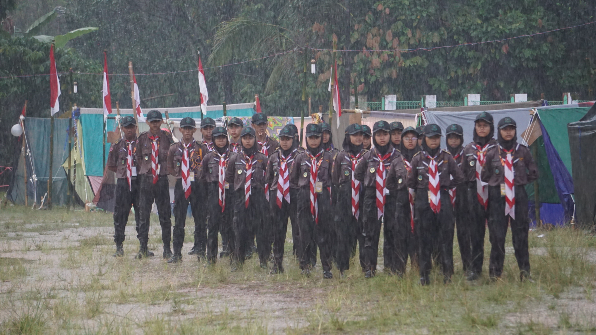 Selanjutnya para peserta mendirikan tenda hingga pukul 11.39 WIB, dan dilanjutkan dengan salat Jumat bagi peserta laki-laki serta salat zuhur bagi peserta perempuan. Kemudian dilanjutkan dengan upacara pembukaan Perkemahan Penerimaan Tamu Ambalan (PPTA) oleh Mukhsin S.Ag., M.Pd.I. selaku Kamabigus MA NU 01 Banyuputih. Upacara berlangsung khidmat di tengah hujan deras yang mengguyur Bumi Perkemahan dengan hanya melibatkan panitia saja sebagai peserta upacara.