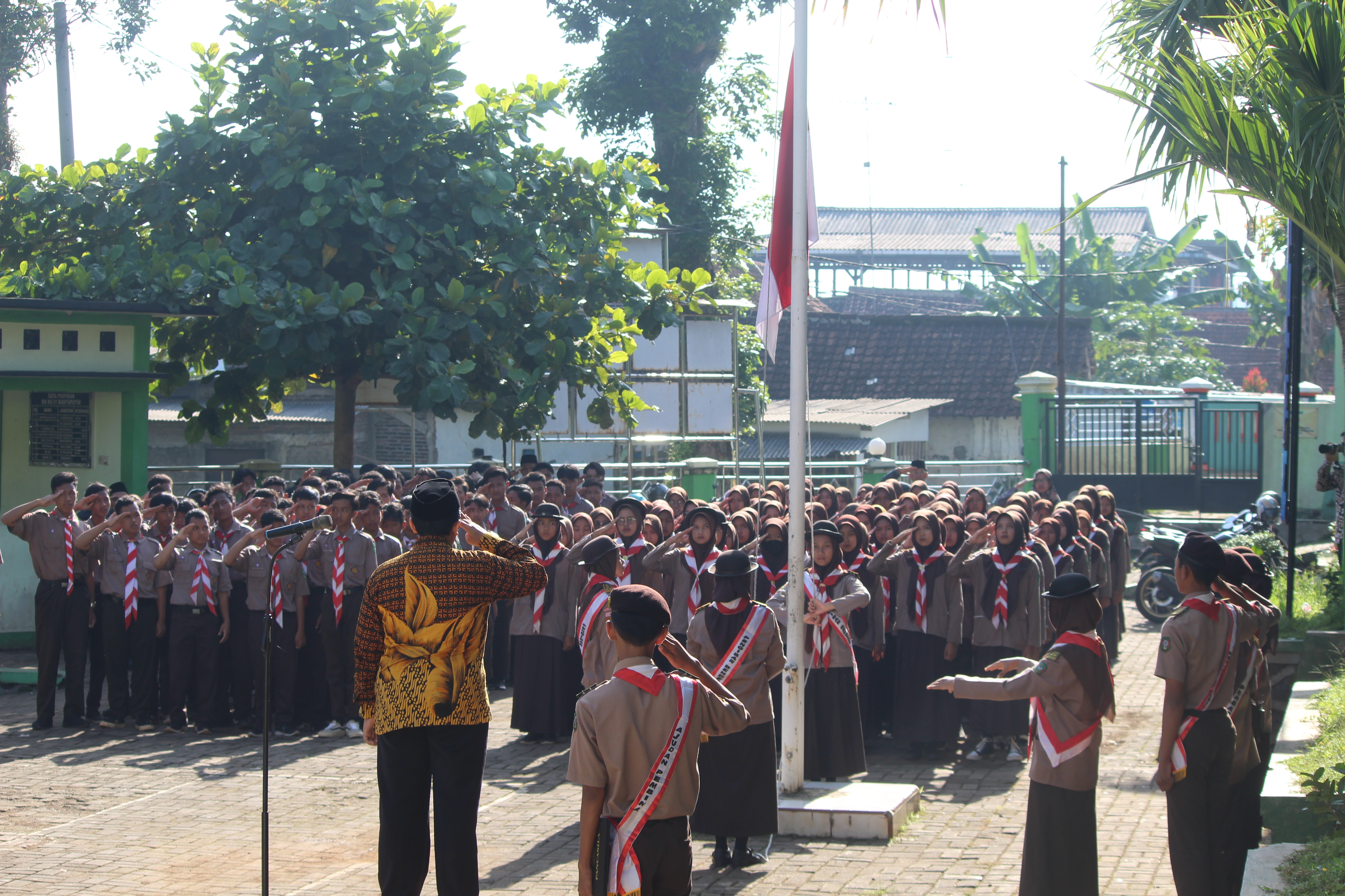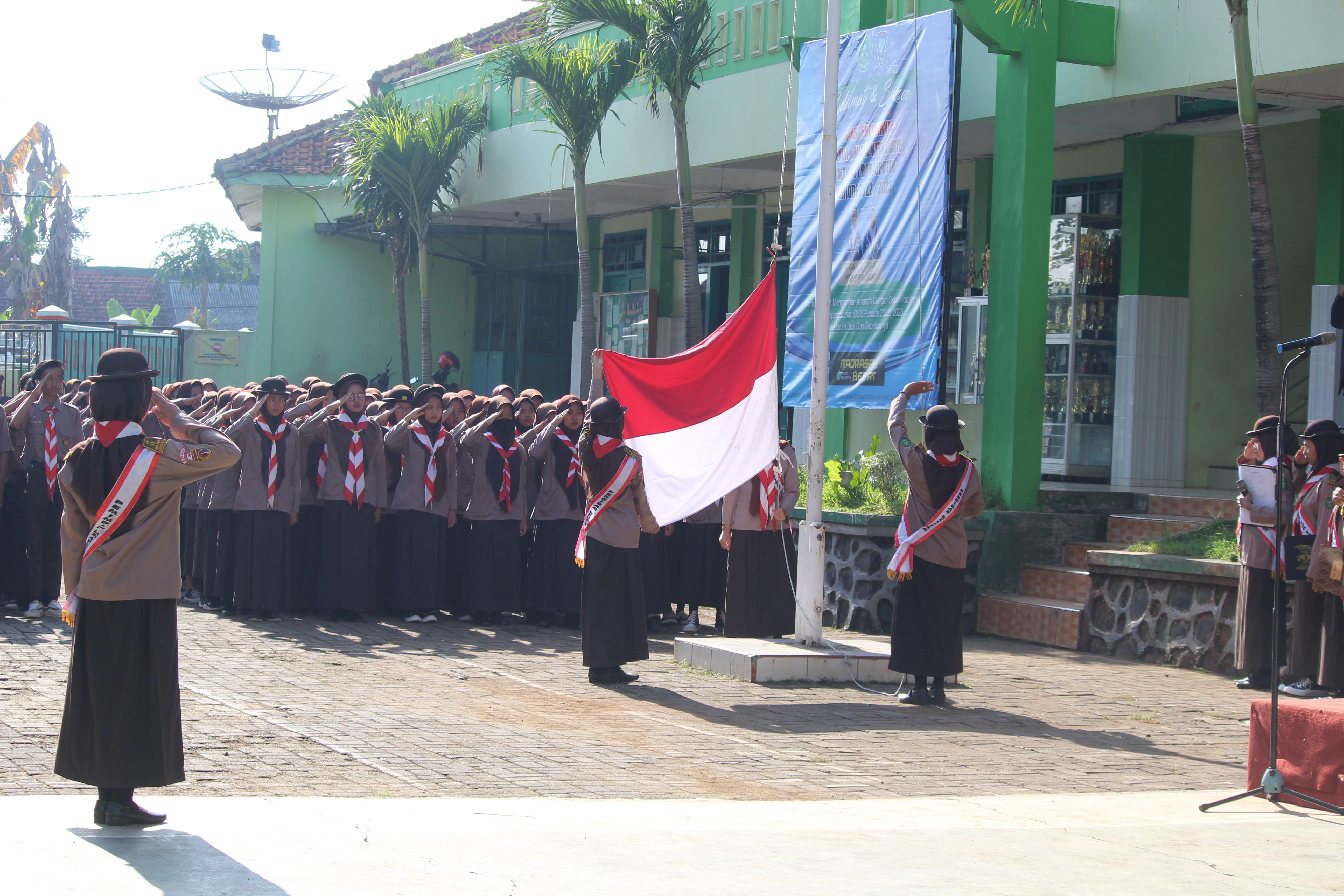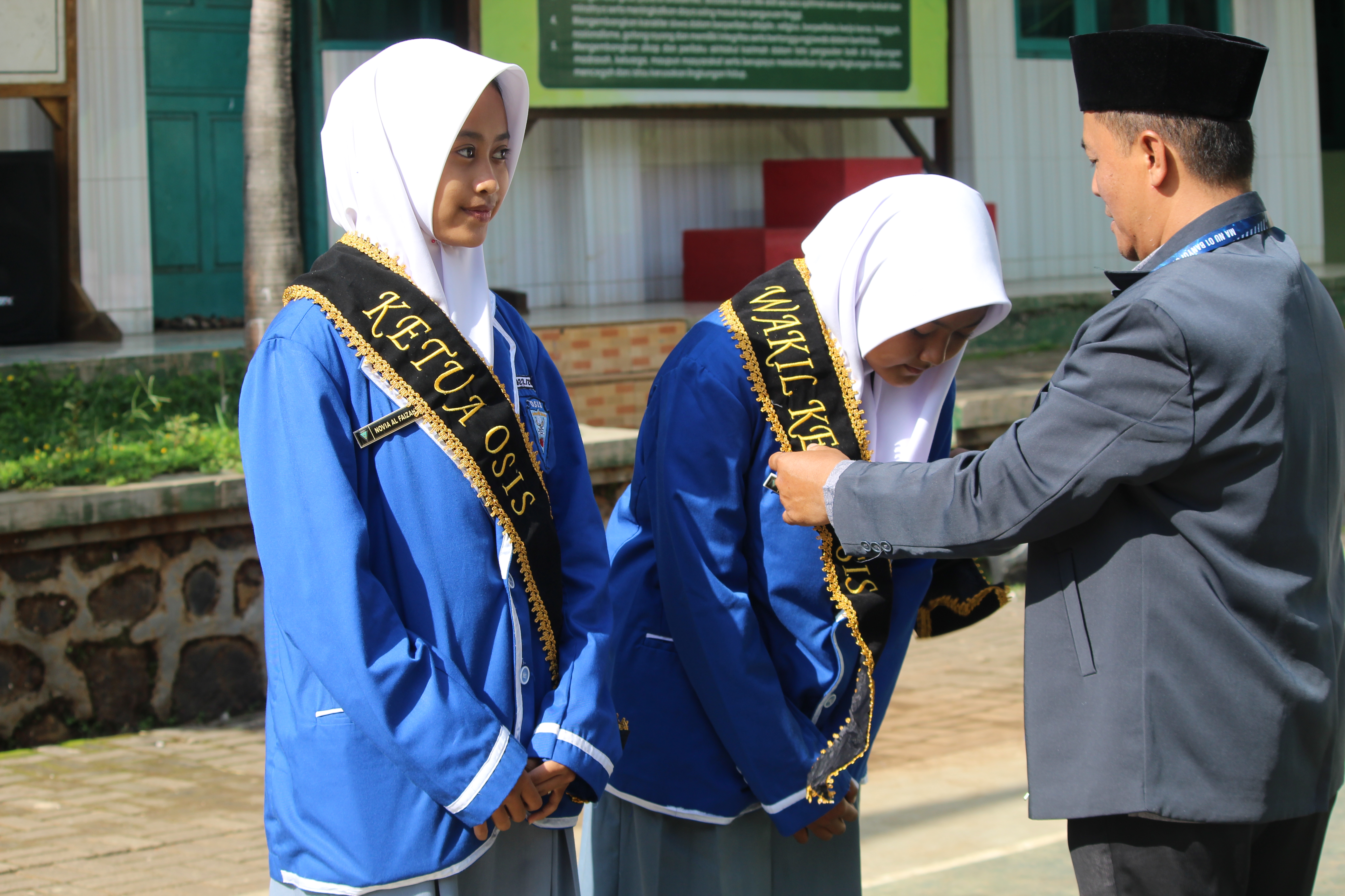 Usai upacara, pada hari spesial pemuda itu, kepala MA NU 01 Banyuputih menyematkan slempang sebagai ucapan selamat kepada ketua dan wakil ketua Organisasi Intra Sekolah (OSIS) yang baru terpilih pada Kamis (20/10/2022) lalu, ketua OSIS Faizah dan wakil ketua OSIS Zahra.