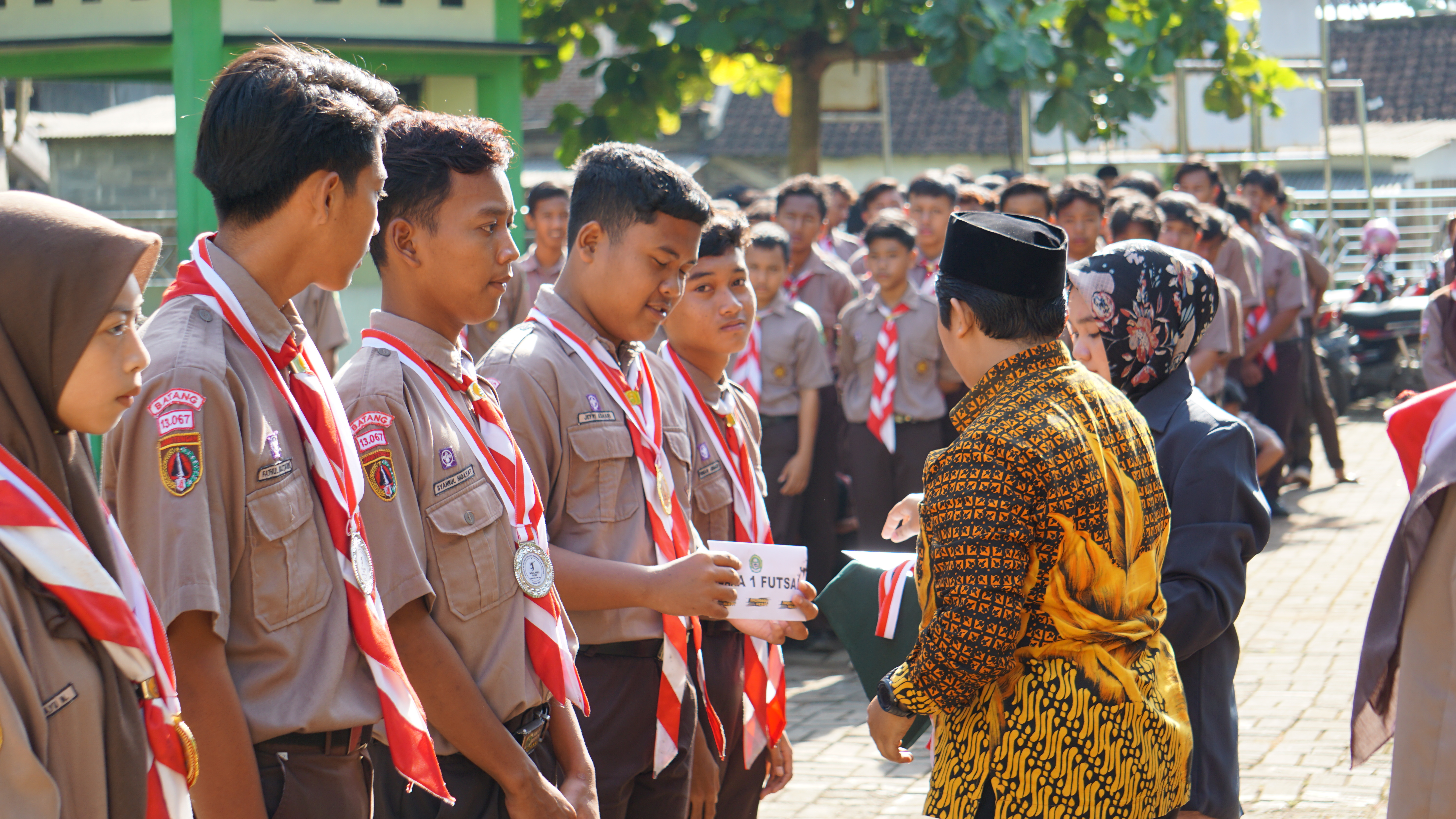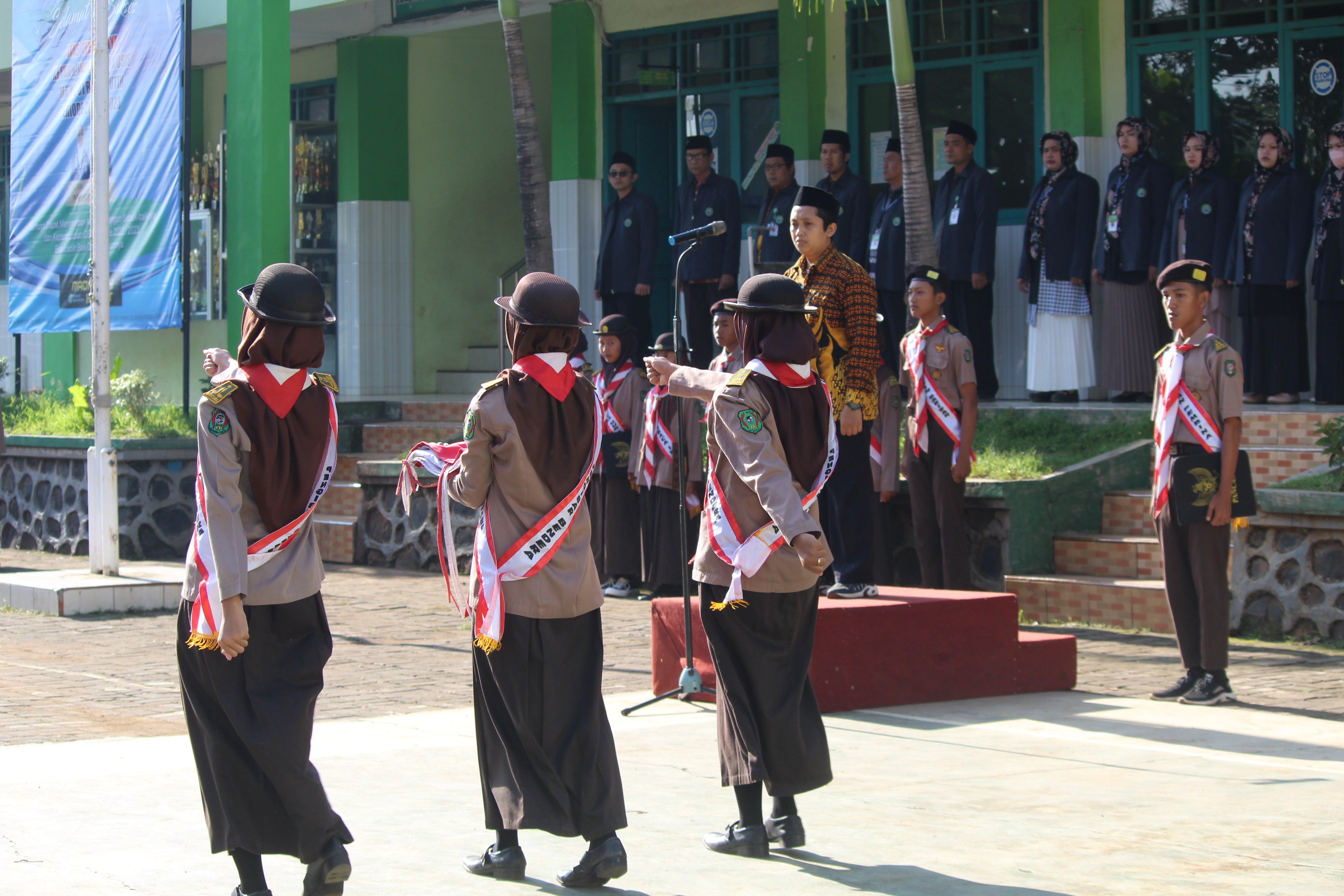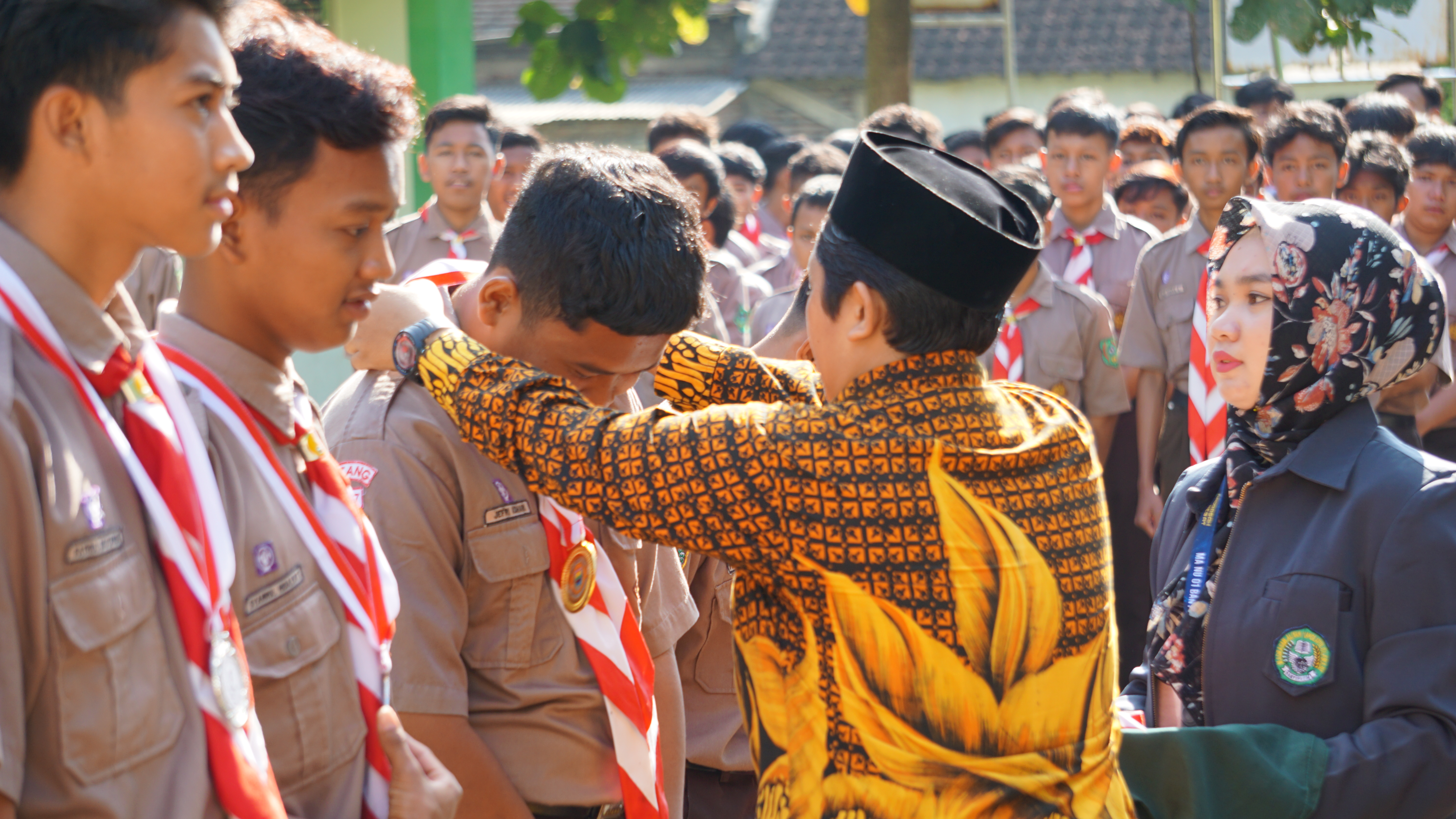 Usai upacara, pada hari spesial pemuda itu, kepala MA NU 01 Banyuputih menyematkan slempang sebagai ucapan selamat kepada ketua dan wakil ketua Organisasi Intra Sekolah (OSIS) yang baru terpilih pada Kamis (20/10/2022) lalu, ketua OSIS Faizah dan wakil ketua OSIS Zahra.