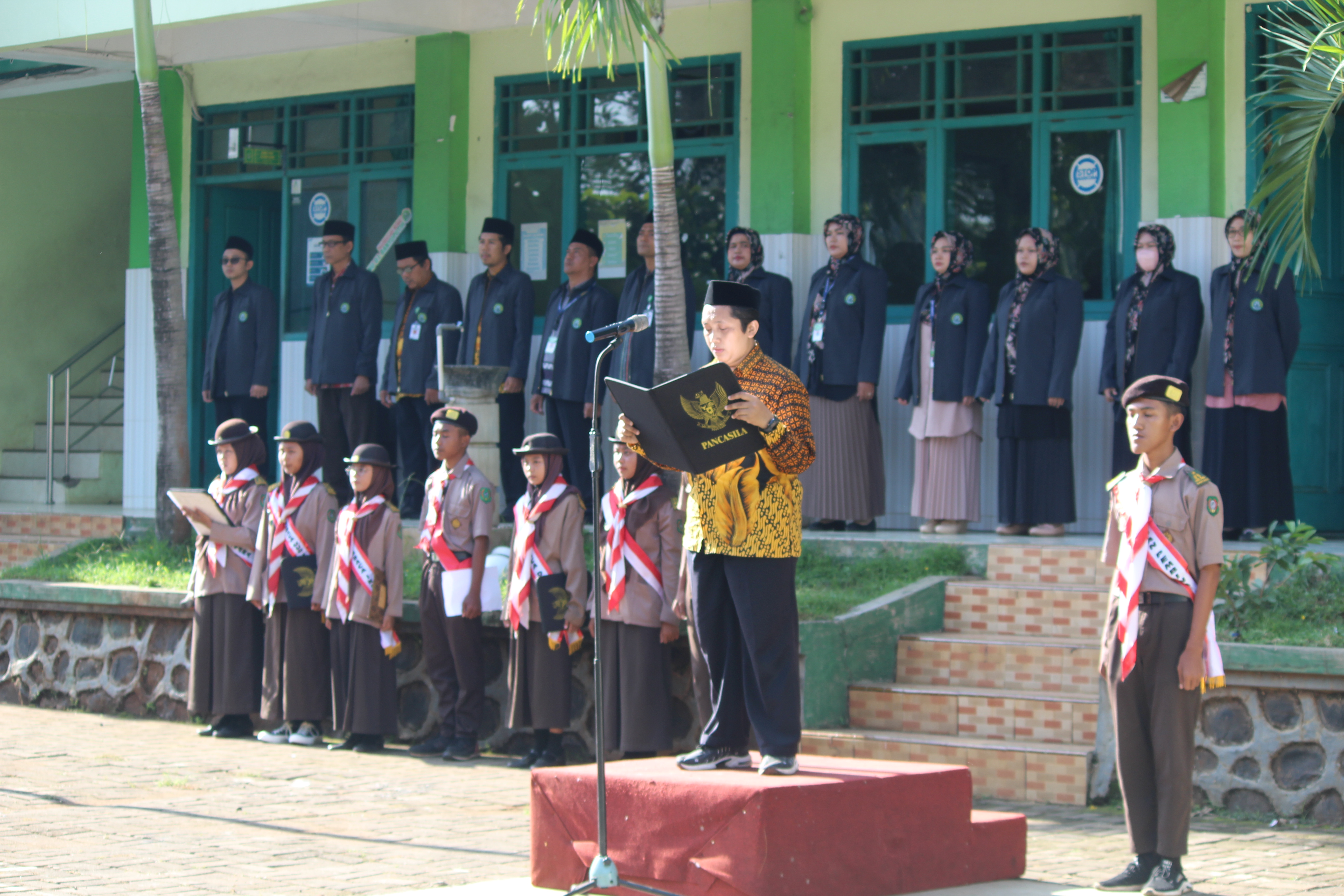 Pada peringatan Hari Sumpah Pemuda 2022, kepala madrasah memberikan motivasi kepada peserta didik MA NU 01 Banyuputih.