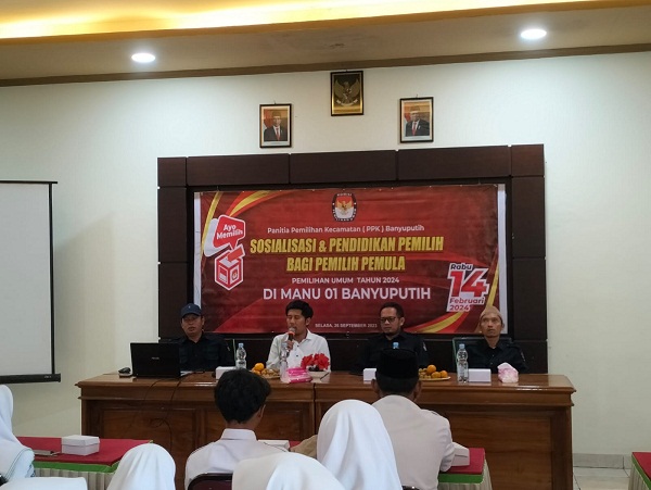 Panitia Pemilihan Kecamatan (PPK) Banyuputih mengadakan acara sosialisasi dan pendidikan pemilih khusus untuk pemilih pemula di MA NU 01 Banyuputih. Kegiatan yang berlangsung pada Senin (26/09/2023) pukul 10.00 WIB di ruang Auditorium MA NU 01 Banyuputih ini bertujuan untuk mempersiapkan pemilih pemula menghadapi pemilu yang akan digelar pada tahun 2024.