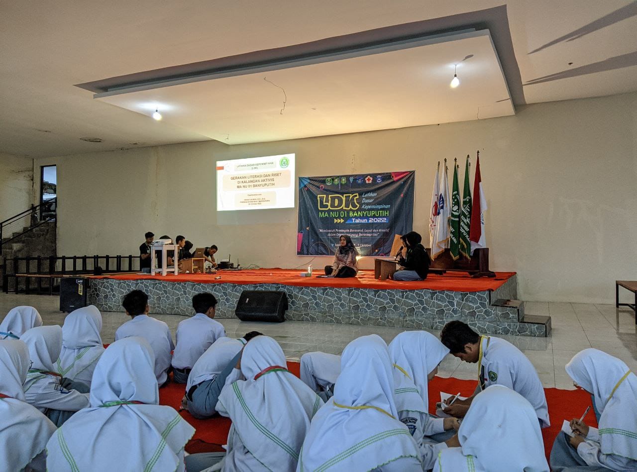 Gabungan organisasi dibawah naungan Madrasah Aliyah Nahdlatul Ulama (MA NU) 01 Banyuputih mengadakan kegiatan Latihan Dasar Kepemimpinan (LDK) untuk para aktivis kelas XI (sebelas), Sabtu-Minggu (8-9/2022). Kegiatan tersebut bertempat di Selaras Kopi Kalisari Pagilaran selama dua hari satu malam yang diikuti 74 peserta.