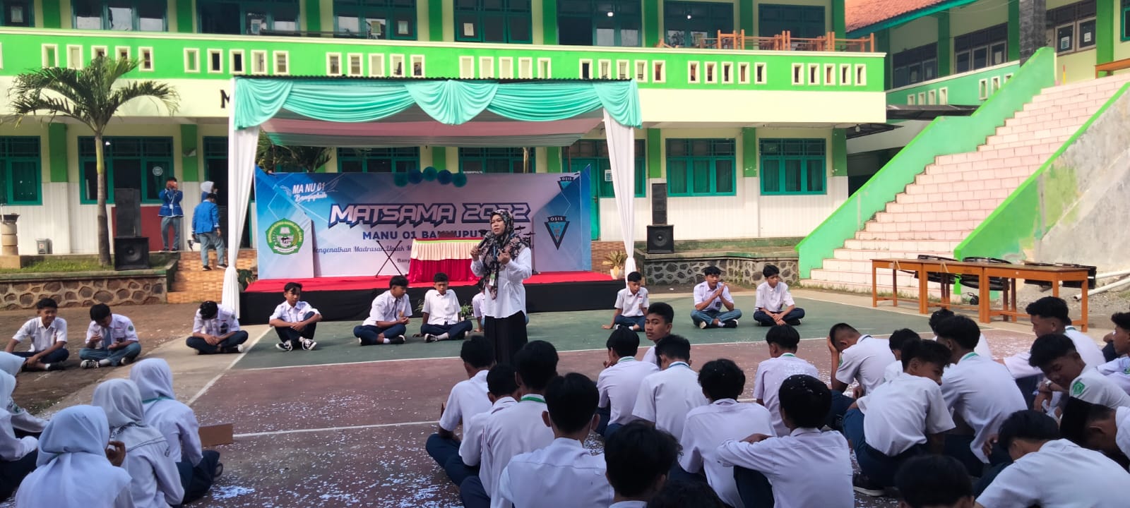 Matsama atau Masa Ta’aruf Siswa Madrasah adalah kegiatan pertama yang diikuti oleh peserta didik baru dalam rangka mengenal bapak ibu guru, teman, sistem pembelajaran, ciri khas serta karakter yang ada di lingkungan madrasah. Hal ini ditegaskan oleh Kepala MA NU 01 Banyuputih Mukhsin, S.Ag., M.Pd.I saat upacara pembukaan di Halaman Madrasah Senin (11/7). Kegiatan yang diselenggarakan oleh Pengurus Organisasi Siswa Intra Sekolah (OSIS) diikuti oleh 235 peserta didik baru selama tiga hari.