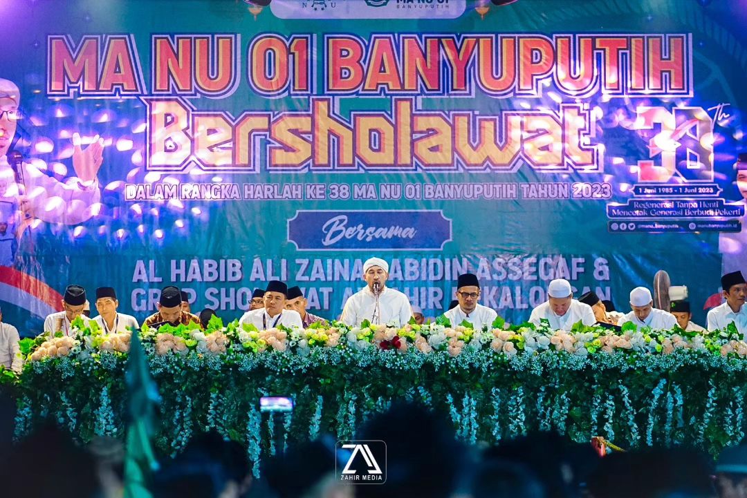 MA NU 01 Banyuputih bersama Az Zahir Pekalongan, grub hadroh ternama yang dipimpin oleh Habib Ali Zaenal Abidin Assegaf untuk tampil dalam rangka hari ulang tahun MA NU 01 Banyuputih yang ke-38. Ribuan jamaah dari berbagai daerah tampak memadati lokasi untuk ikut serta dalam kegiatan tersebut.