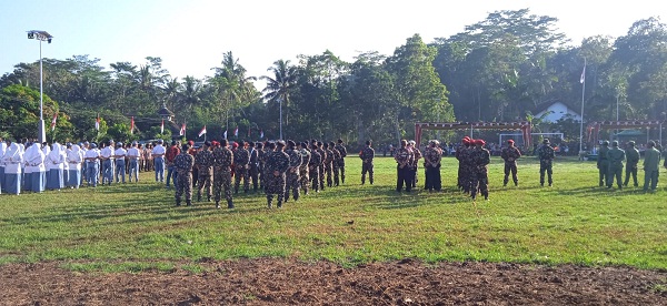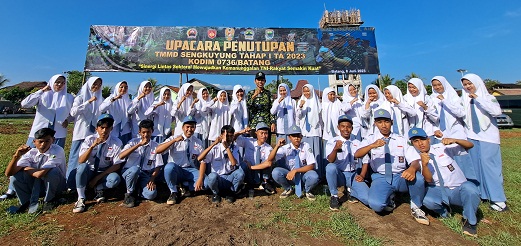 Kodim 0736 Batang menggelar upacara penutupan TNI Manunggal Masuk Desa (TMMD) Sengkuyung Tahap Pertama Tahun 2023 di Lapangan Desa Sembung, Kecamatan Banyuputih, Kabupaten Batang, Kamis (8/6/2023). Sejumlah 28 siswa MA NU 01 Banyuputih mengikuti upacara yang dimulai pukul 07.00 WIB.