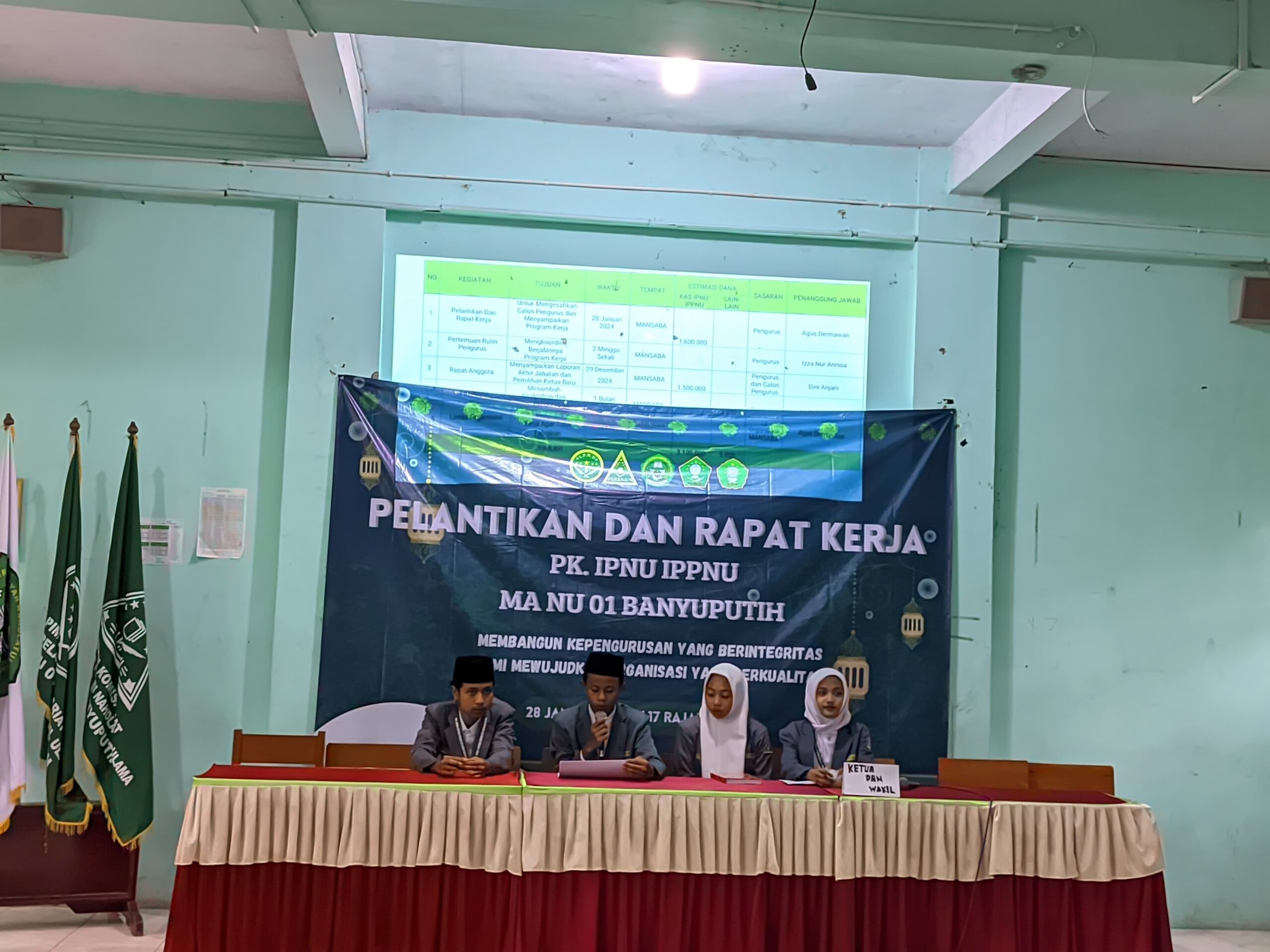 Pengurus Pimpinan Komisariat (PK) Ikatan Pelajar Nahdlatul Ulama (IPNU) dan Ikatan Pelajar Putri Nahdlatul Ulama (IPPNU) MA NU 01 Banyuputih Periode 2023-2024 telah sukses menyelenggarakan acara Pelantikan dan Rapat Kerja di MANU 01 Banyuputih pada Ahad (28/1/2024). Acara ini turut dihadiri oleh Pimpinan Cabang IPNU dan IPPNU Kabupaten Batang serta Pimpinan Anak Cabang IPNU dan IPPNU Kecamatan Banyuputih.