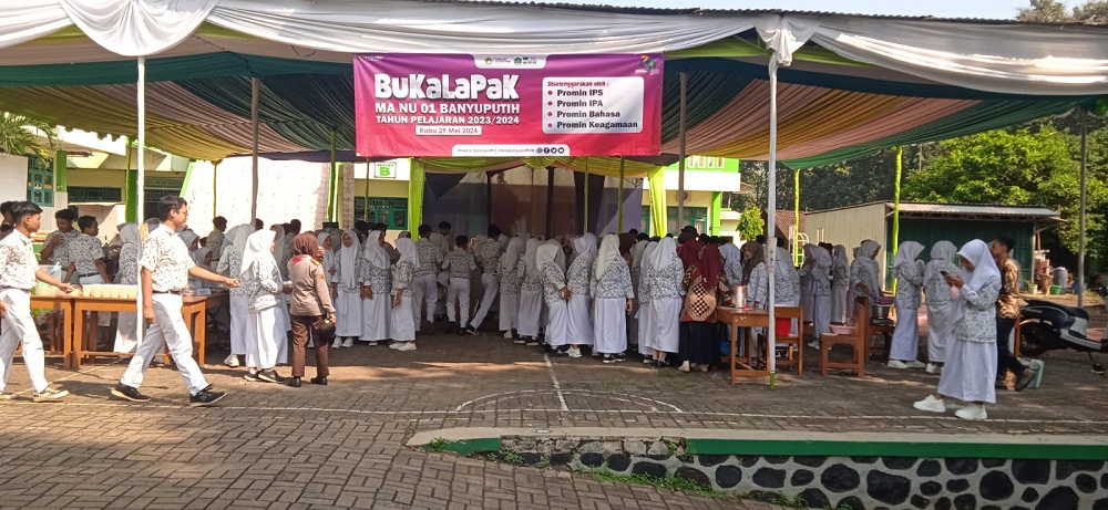 Dalam rangka menumbuhkan jiwa kewirausahawan, peserta didik MA NU 01 Banyuputih melakukan aktivitas pembelajaran di luar kelas yaitu dengan mengadakan program Buka Lapak pada Rabu (29/5) pagi. Kegiatan ini bertempat di halaman MANU 01 Banyuputih dan diikuti oleh seluruh program minat kelas 11 dari IPS, IPA, Bahasa dan Agama.