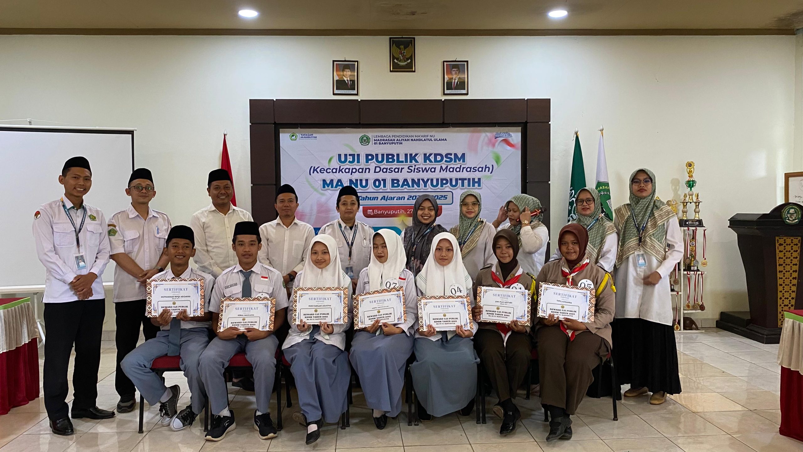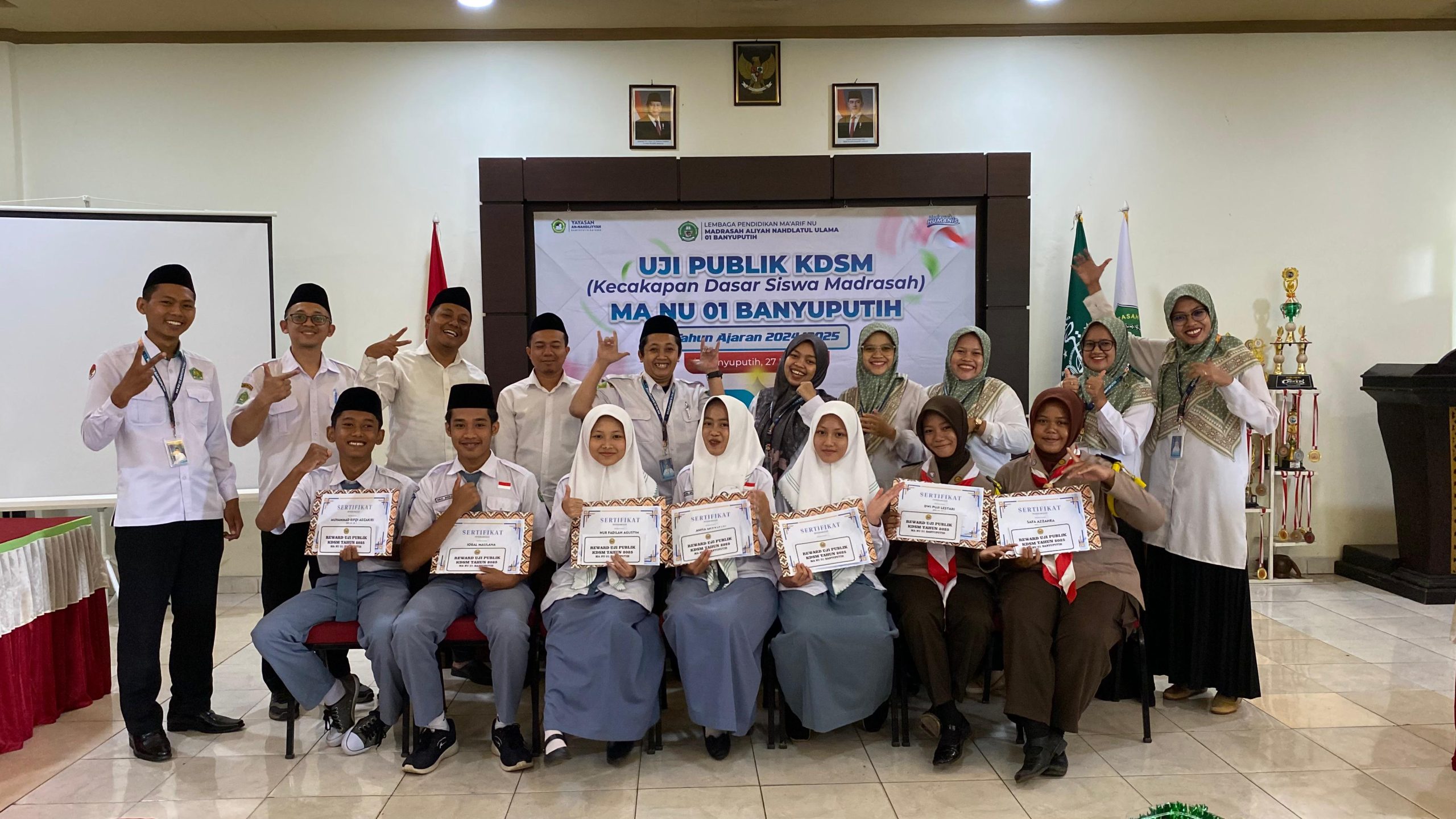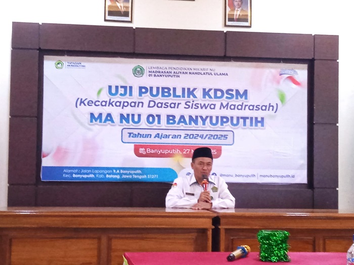 Madrasah Aliyah Nahdlatul Ulama (MA NU) 01 Banyuputih Kabupaten Batang menggelar Uji Publik Kecakapan Dasar Siswa Madrasah (KDSM) pada Selasa (27/5/2025). Sebanyak tujuh siswa-siswi terbaik dari kelas X mengikuti uji publik yang digelar secara khusus sebagai bagian dari program tahunan KDSM.